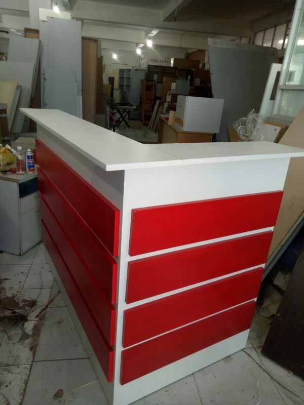 Thanh Lý Quầy Lễ Tân Cũ Chữ L Màu Trắng Đỏ